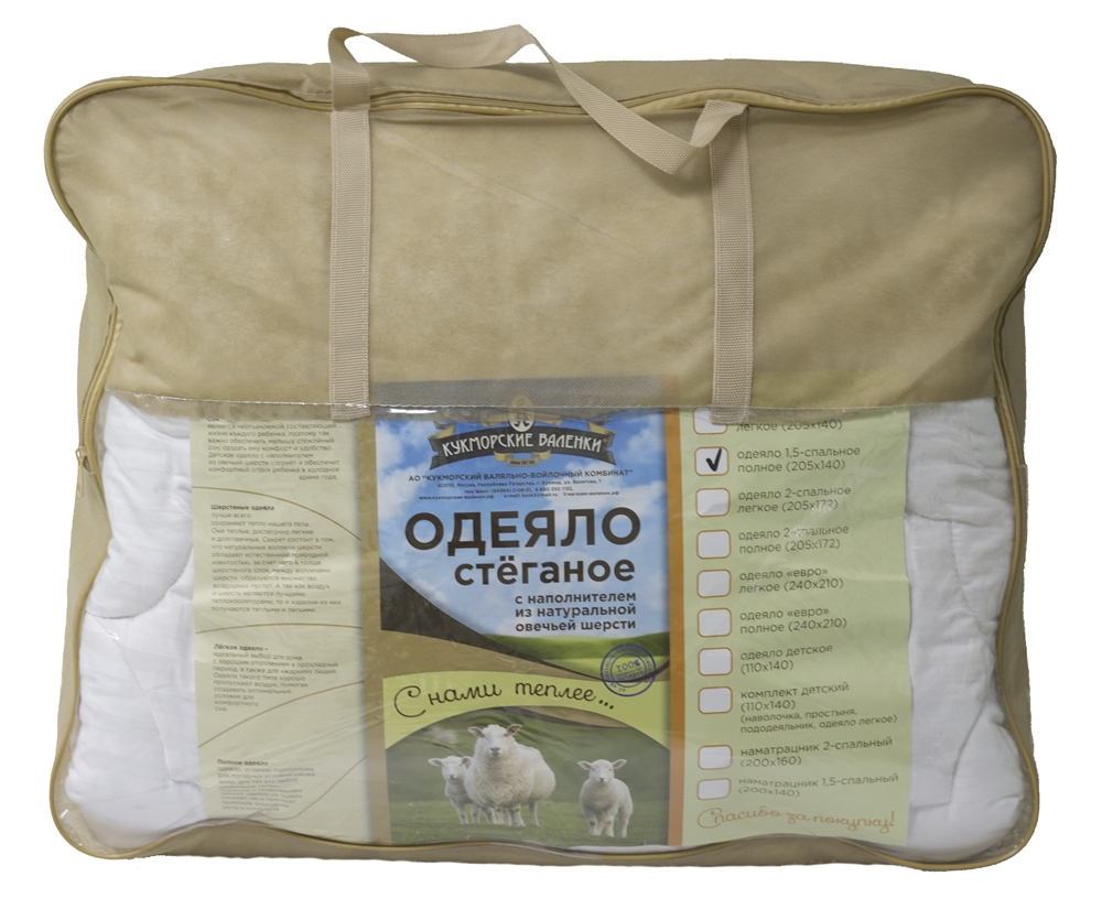 Современные стеганые одеяла изготавливаются на стегальных машинах, которые надежно закрепляют наполнитель в чехле. Кант по периметру одеяла помогает изделию держать форму. Следует отметить, что овечьи одеяла очень теплые. Секрет состоит в том, что шерсть имеет низкую теплопроводность, кроме того натуральные волокна шерсти обладают естественной природной извитостью, за счет чего в толще шерстяного слоя, между волокнами шерсти, образуются множество наполненных воздухом «кармашков». А так как воздух и шерсть является лучшими теплоизоляторами, то и изделия из них получаются легкими и теплыми.