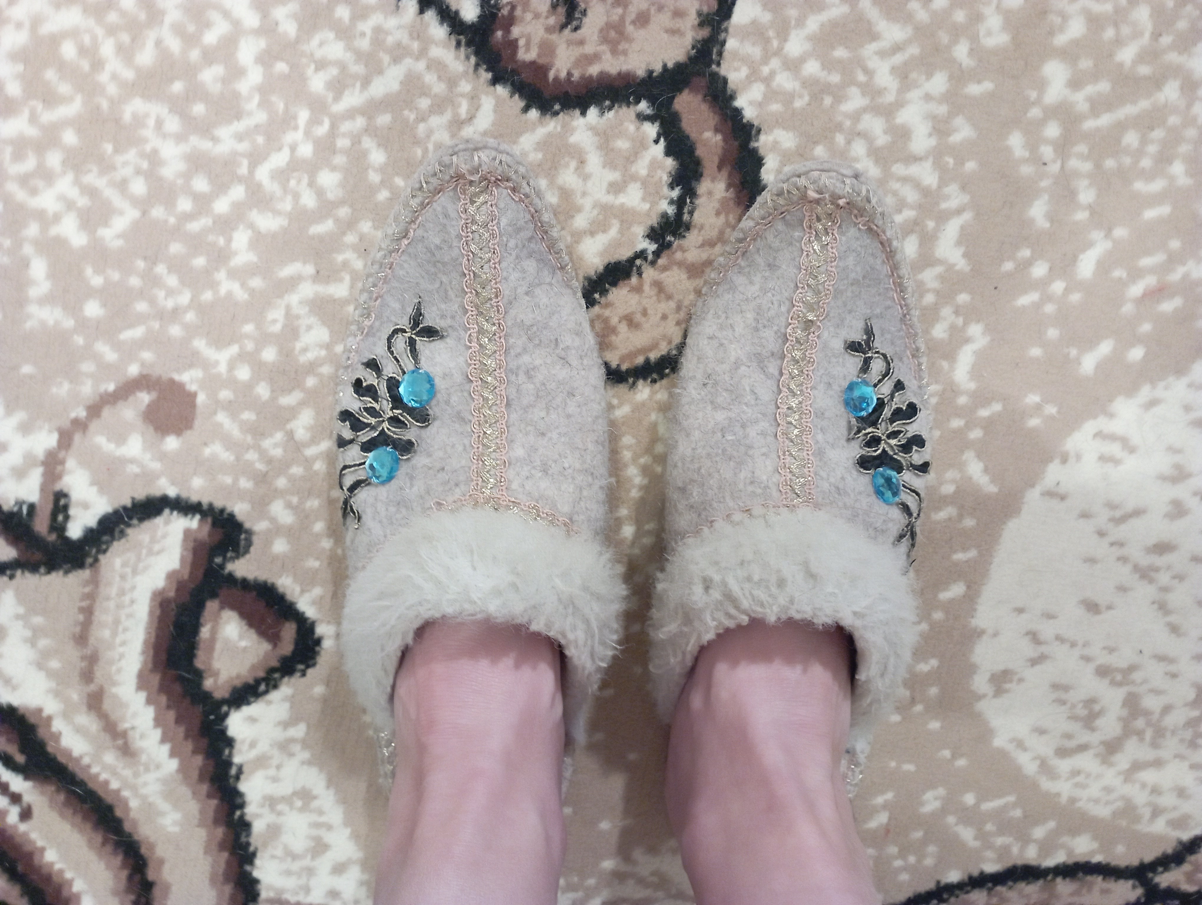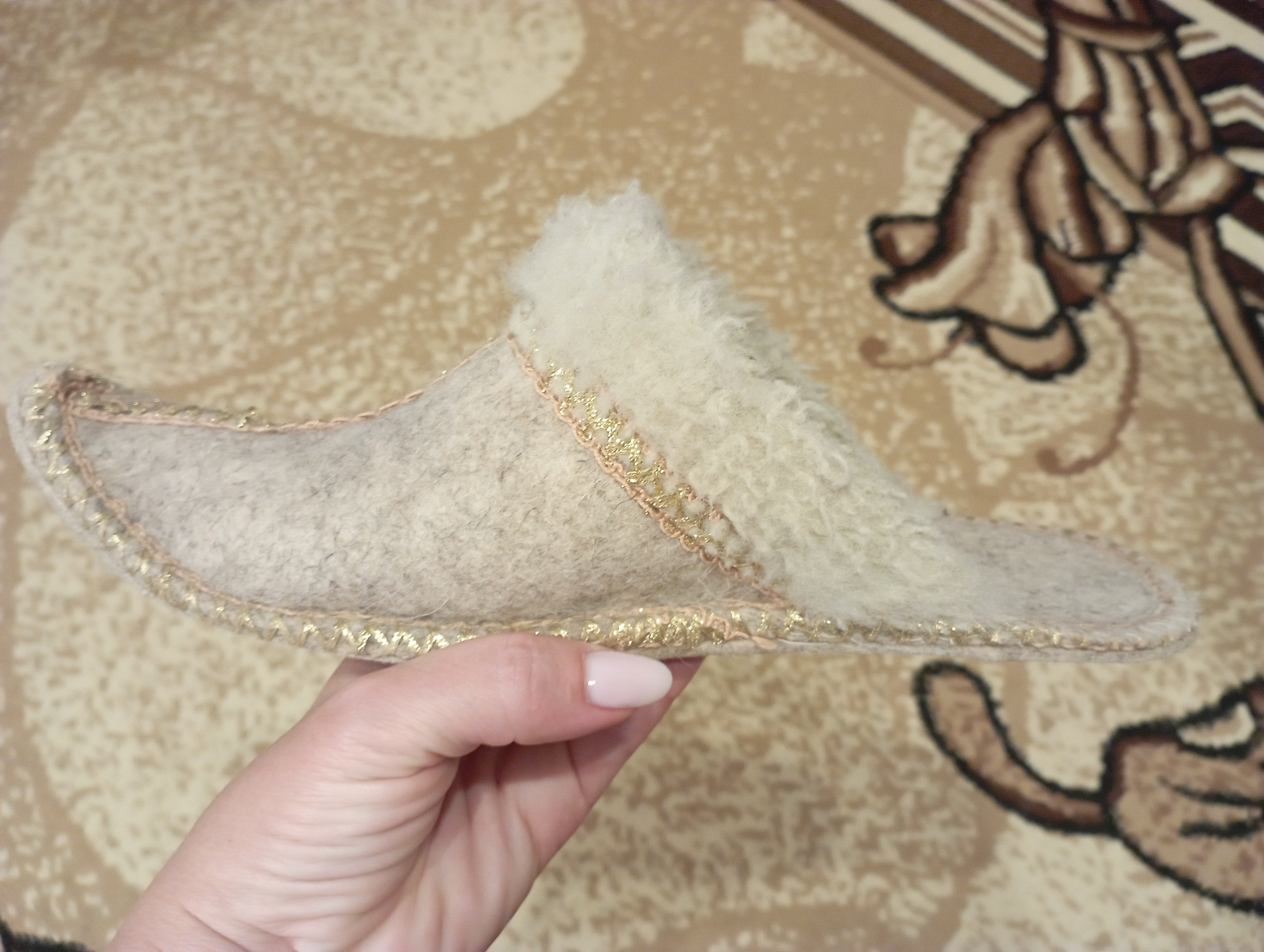 ВикторияТапочки просто супер, ножки отдыхают в них так кайфово ходить. Сперва разносить по ноге надо пару дней так как войлок приобретают форму вашей стопы и ходите как босиком даже лучше , мягкие очень удобные!