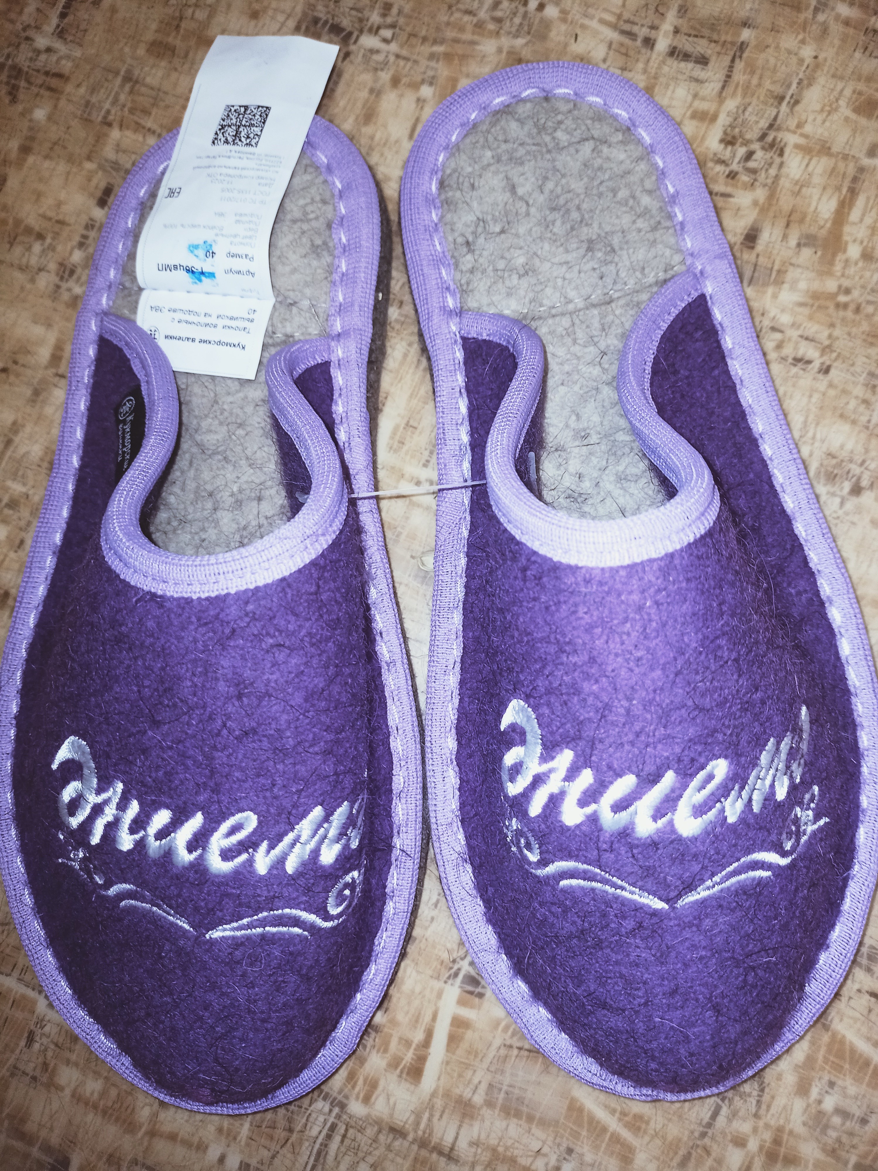Тапочки войлочные с вышивкой изготовлены из тонкошерстного войлока (100% натуральная овечья шерсть) и декорированы контрастной тесьмой и машинной вышивкой.Домашние тапочки с надписями от производителя – это уникальный и оригинальный подарок, ведь каждая пара – это настоящий шедевр.Такая обувь обязательно должна быть в каждом доме,ведь они всегда будут дарить человеку комфорт и поднимать настроение. Подошва ЭВА (МП)- микропора. Размер полный. Предназначены для носки в домашних условиях.