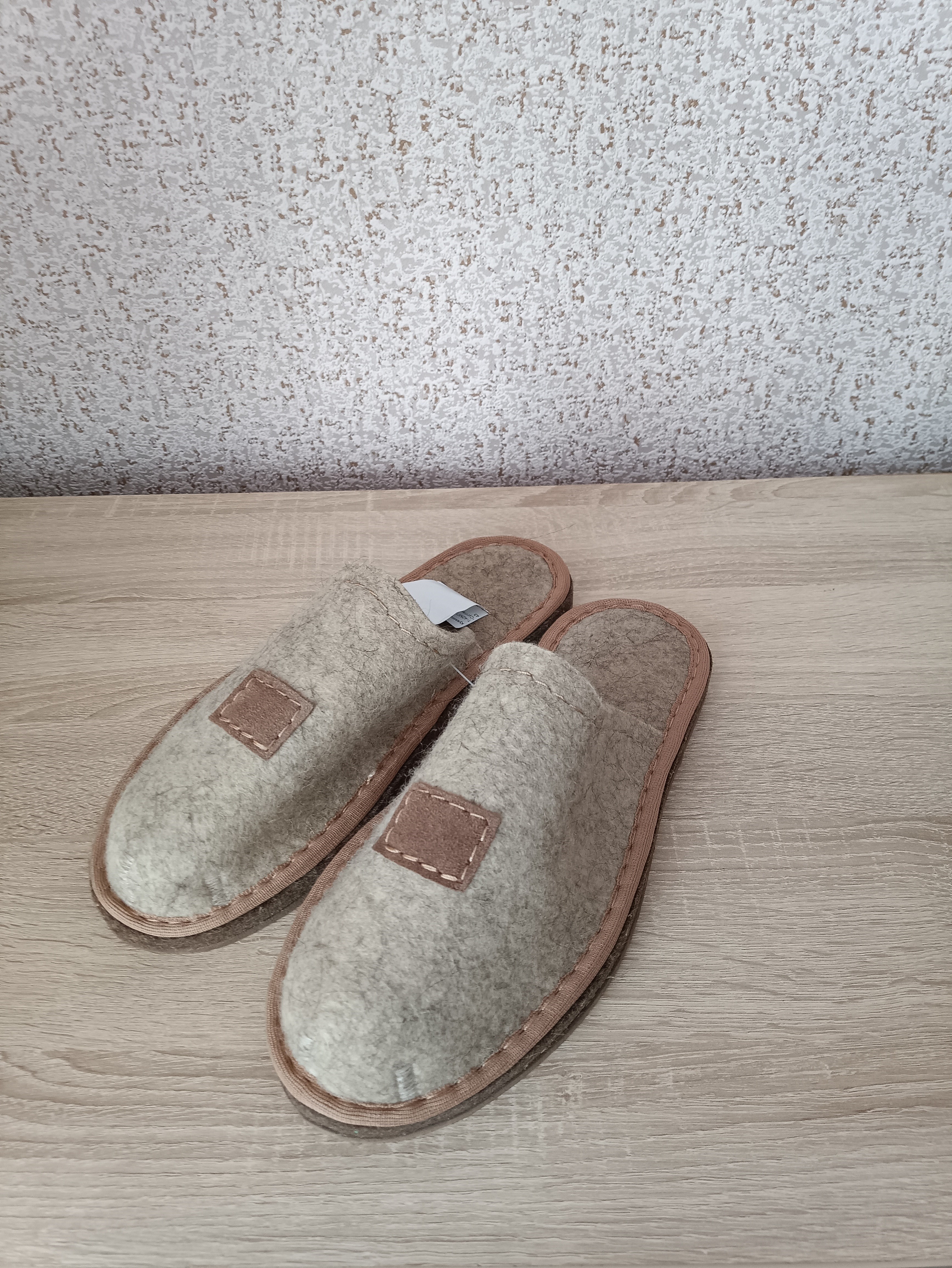Тапочки «Уют» изготовлены из полугрубошерстного войлока (100% натуральная овечья шерсть), предназначены для носки в домашних условиях.