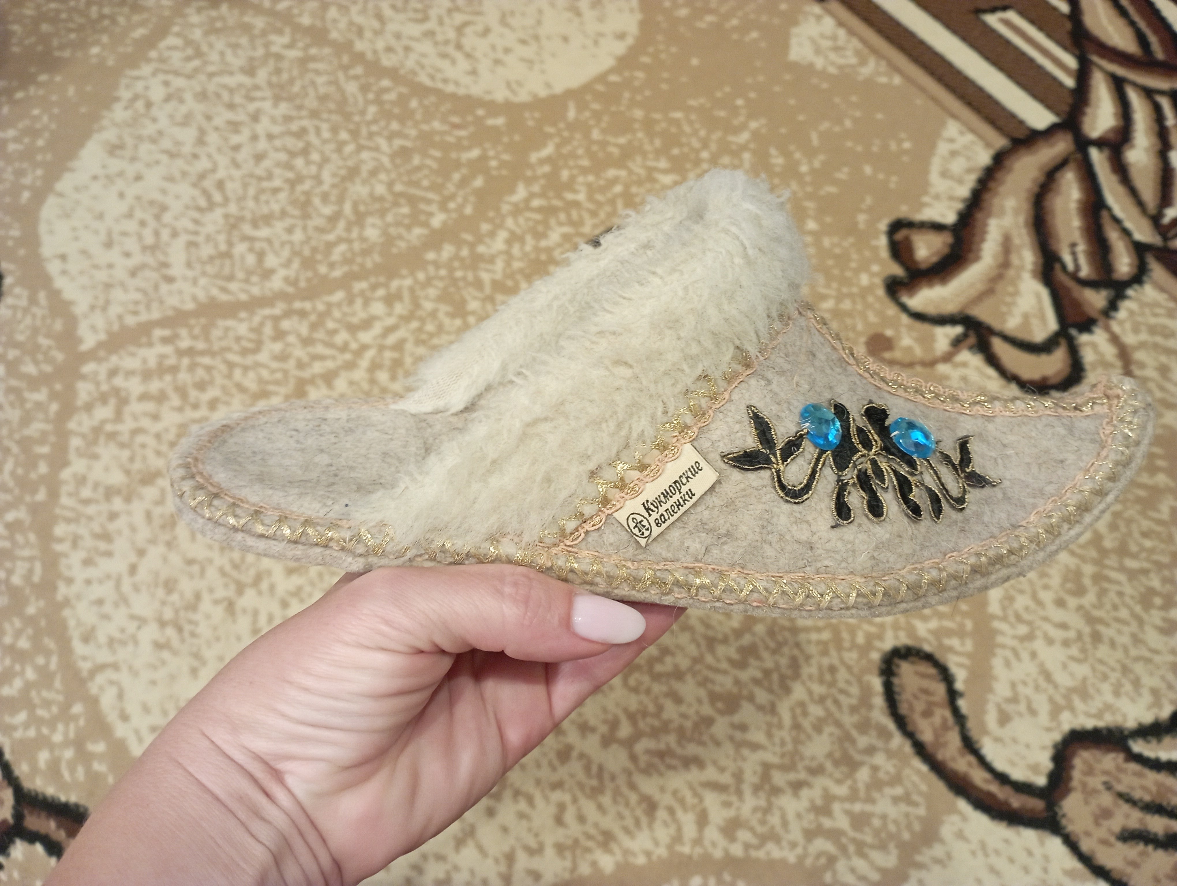 ВикторияТапочки просто супер, ножки отдыхают в них так кайфово ходить. Сперва разносить по ноге надо пару дней так как войлок приобретают форму вашей стопы и ходите как босиком даже лучше , мягкие очень удобные!